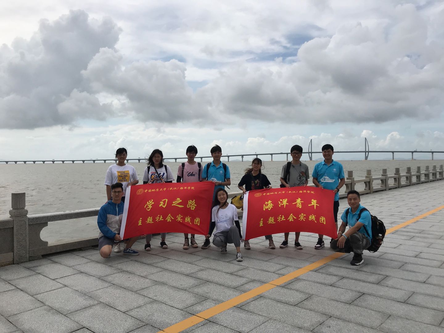 7月6日,开云官网 主题社会实践团来到港珠澳大桥,近距离感受祖国伟大的海洋交通基础建设。