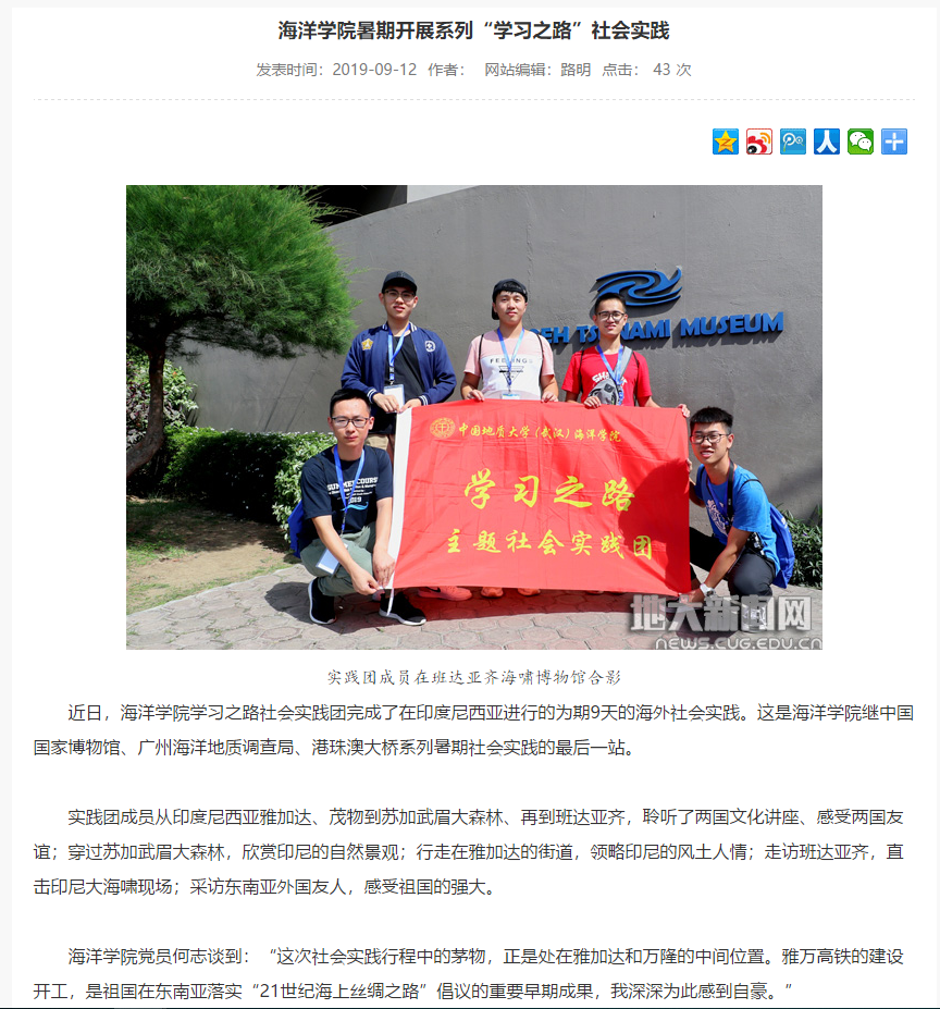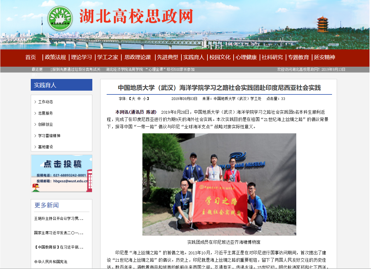 湖北高校思政网、地大新闻网地大之声陆续报道开云官网 社会实践活动。