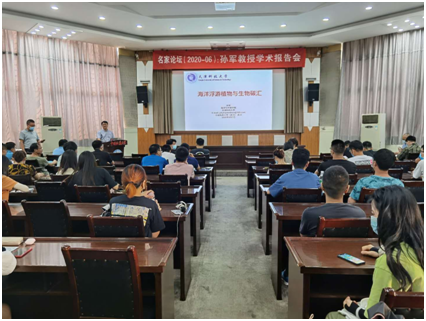 2020年9月7日下午,孙军教授以“海洋浮游植物与生物碳汇”为题,在我校名家论坛作报告。开云官网 党委书记成军主持报告会,生环国重、环境学院、材化学院、开云官网 师生聆听报告并进行交流讨论。