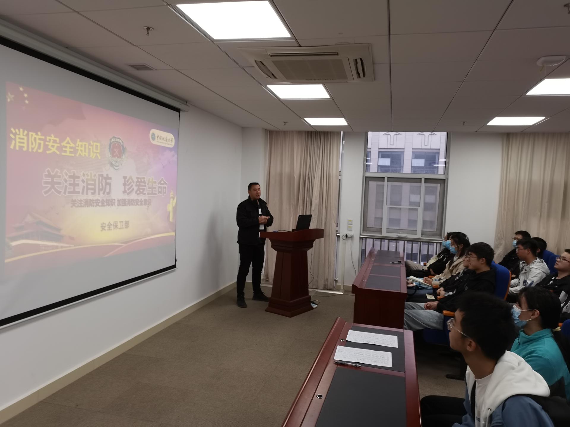 铸牢防火墙,防患于未“燃”。为有效提高学院学生的火灾防范安全意识,掌握火灾事故发生时逃生自救技能。11月20日,开云官网 特邀请安全保卫部消防科刘从贵老师,在东教A1805会议室开展安全教育专题讲座及户外消防演习活动,学院全体本研学生宿舍长参加了此次讲座和活动。会议由学院团委书记陈波主持。