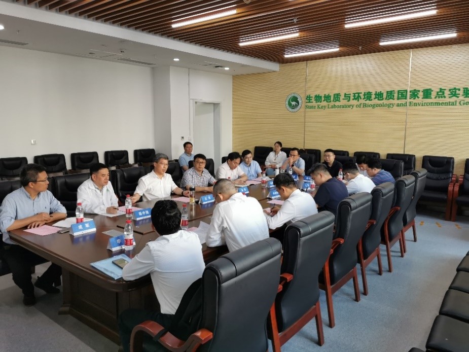 谢伟副书记一行参观了生物地质与环境地质国家重点实验室。王华副校长携相关部门(单位)负责人接待并座谈交流。王华副校长致欢迎辞,概要介绍了学校办学历史、学科建设、科学研究、人才培养等情况,感谢南沙区政府给予学校的大力支持。他指出,地大办学底蕴深厚、学科实力强劲,海洋是学校优先发展的学科之一,学校期待与南沙区携手共建、共创佳绩。