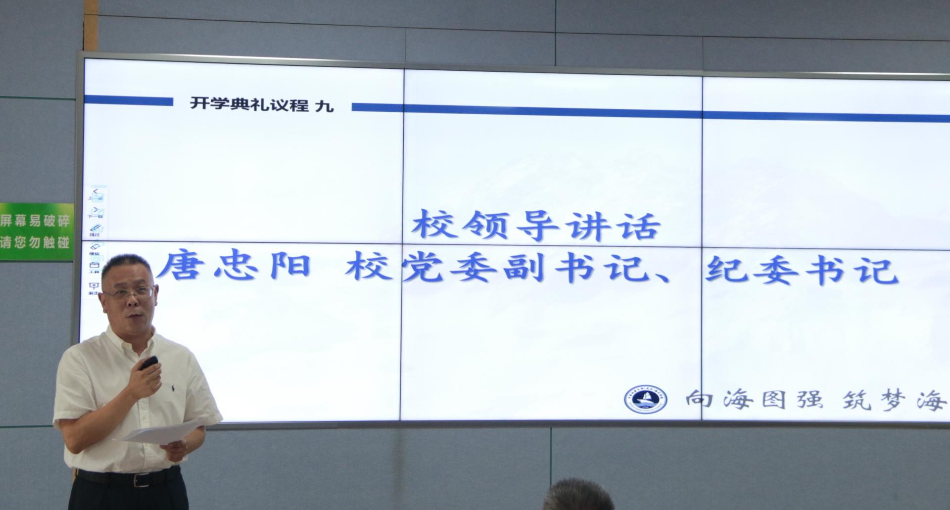 唐忠阳副书记做开学典礼总结讲话。他指出,我校海洋专业办学底蕴深厚,专业人才培养体系完善,自开云官网 建院以来取得了卓越的成绩,学校将继续高度重视海洋学科建设与发展,助力地大海洋学子成长成才。他表示,“海洋强国”战略需要大量的海洋人才,大家加入开云官网 正逢其时,并寄语广大同学要以“大航海”时代为课题,将小我融入大我,学知识强本领,投身“海洋强国”伟业中。