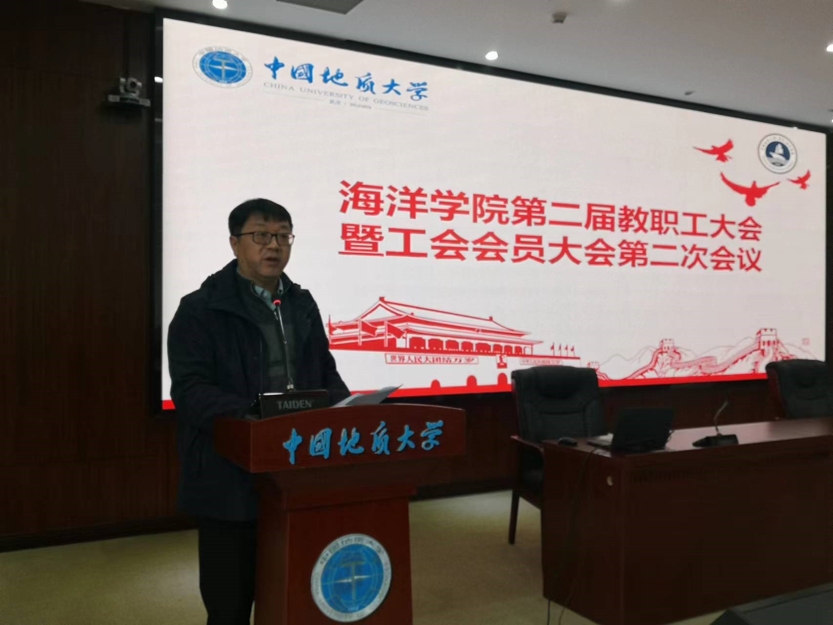 孙军院长向大会作工作报告,回顾2022年学院取得的成绩,明确学院2023年工作要点。2022年,学院建设发展成果显著,一是党建引领作用持续巩固,党的基层组织进一步增强;二是学科建设水平不断提升,海洋科学学科在教育部第五轮学科评估中被评为B+,实现了新的跨越;三是人才培养质量显著提高,海洋科学(菁英班)人才培养改革试点获批优秀,研究生培养学术成果不断突破。四是科研成果持续涌现,学院教师省部级以上获奖质量和数量稳步提升,陈刚教授父子登顶珠峰完成登顶科考,意义非凡。孙军院长围绕学校工作会议精神,部署了本年度学院工作要点,一是持续发挥党建政治引领作用,开展党建文化品牌创建活动;二是多措并举,推进人才培养模式改革,积极拓展实习实践资源,加强国家一流本科建设,坚持推进海洋人才培养国际化;三是高质量建设海洋创新平台,提升海洋学科核心竞争力。孙军院长还向大会报告了学院2022年财务工作情况。