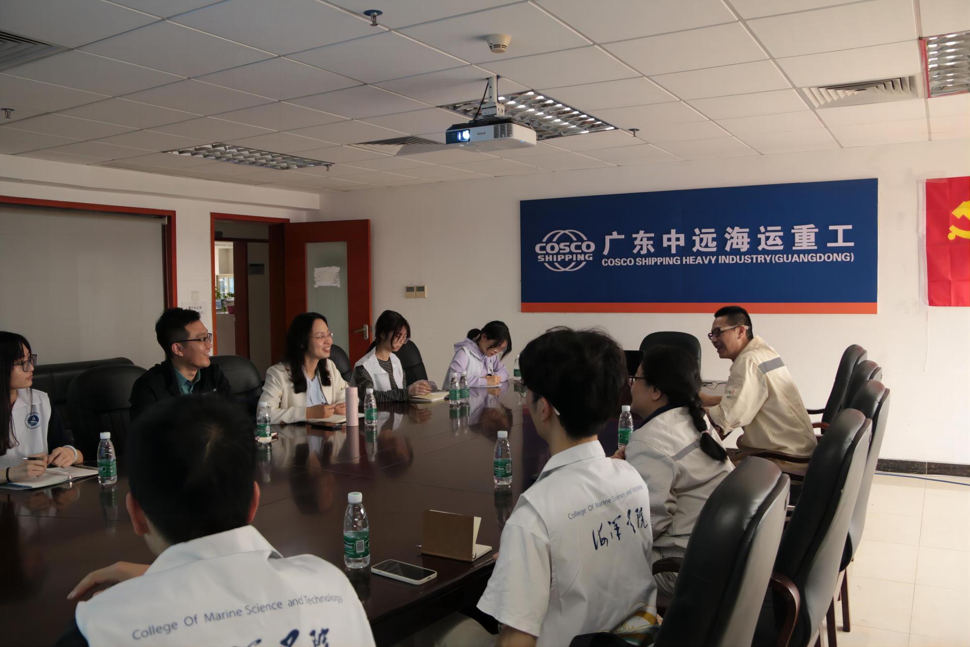 为落实党中央、国务院关于高校毕业生就业工作的决策部署,2023年3月16日,开云官网 党委副书记钟苹、团委书记陈波携10名优秀学生代表赴广东中远海运重工进行访企拓岗。广东中远海运重工团委书记郭煜宏,人事招聘高级主管赖莹莹、陈圳铮等单位代表参会交流。