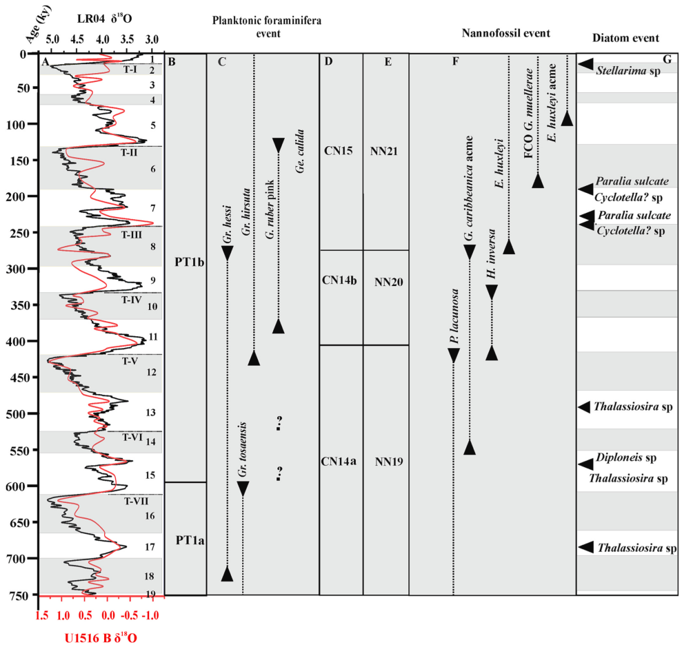 研究发现IODP369 U1516B钻孔保存了更新世以来完整的钙质超微化石及浮游有孔虫记录,确定了更新世以来7个浮游有孔虫生物地层事件。这些事件标志着全球气候转型,与全球的对比记录显示了南北半球气候变化的差异,同时识别出了8个钙质超微化石生物地层事件,并且与全球其他大洋的数据高度一致,说明研究区古海洋演化整体受控于全球气候变化。