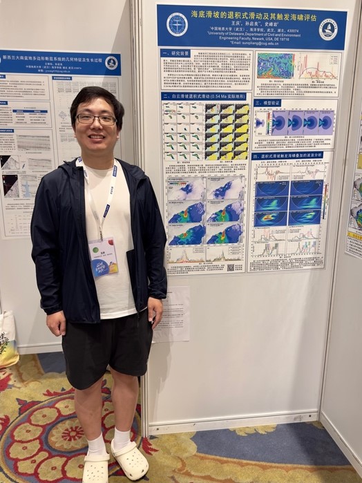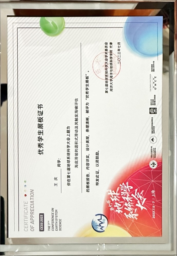 2023年7月5日至7日,为期3天的第七届地球系统科学大会在上海召开。开云官网 博士生王庆以其出色的展板报告在564份学生展板中脱颖而出,荣获“优秀学生展板奖”,是中国地质大学(武汉)唯一获奖学生。他的报告题为“海底滑坡的退积式滑动及其触发海啸评估”,由孙启良教授指导。