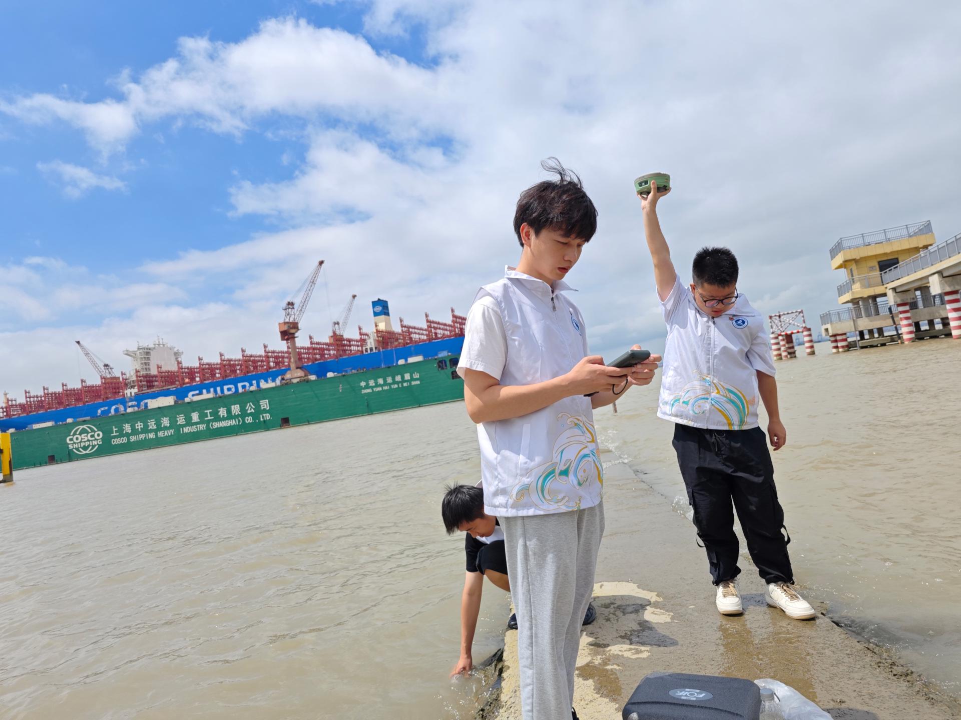 陈刚教授长期从事青藏高原地壳运动监测和珠穆朗玛峰地学研究,曾带领学生参与中国地质大学(武汉)第二次大学生长江源科考,并成功登顶格拉丹东主峰。他说:“长江出海口与长江源一样,对于长江大保护战略具有重要意义。长江口位于黄海和东海的交汇处,我们在长江口各水文站开展了大量采样监测调查和实地调研工作。希望通过此次社会实践活动,为海洋科学事业和生态环境保护工作培养更多接班人。”