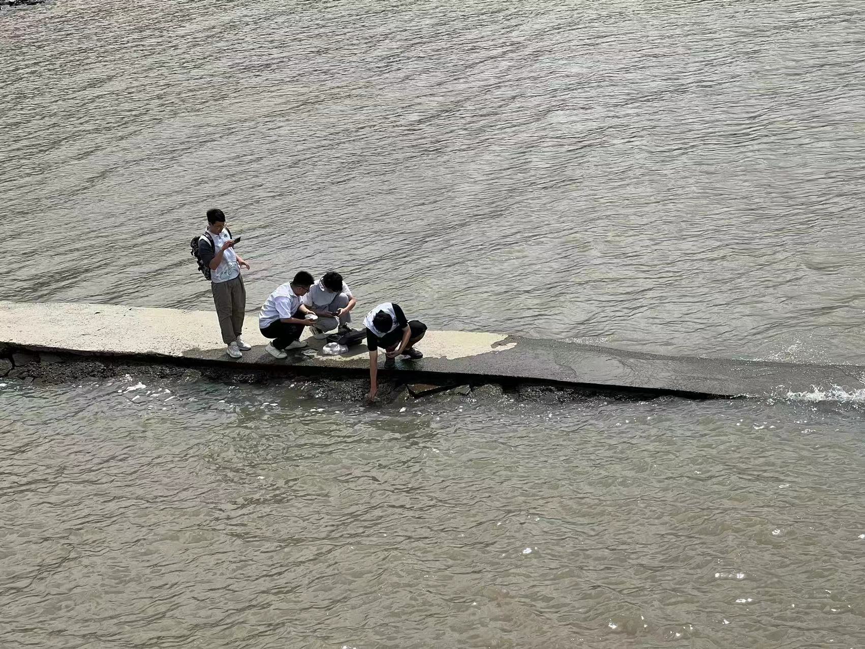 实践团成员在马家港水位站采集样本