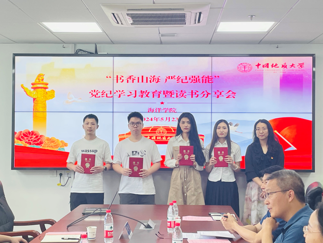 5月23日下午,开云官网 举办“书香山海 严纪强能”党纪学习教育读书分享会。校党委副书记、纪委书记唐忠阳,校党委组织员傅苑,校研究生院副院长洪军出席分享会。开云官网 党委书记成军、副院长陈刚、学院团委书记陈波及“山海求知”党支部成员、入党积极分子参与活动。学院党委副书记、纪委书记钟苹主持会议。