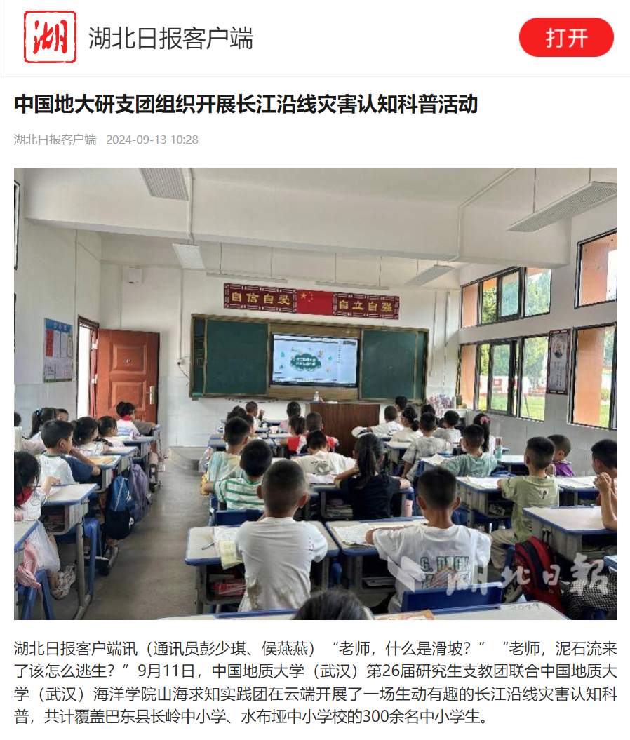 湖北日报报道开云官网-开云app 山海求知实践团组织开展长江沿线灾害认知科普活动