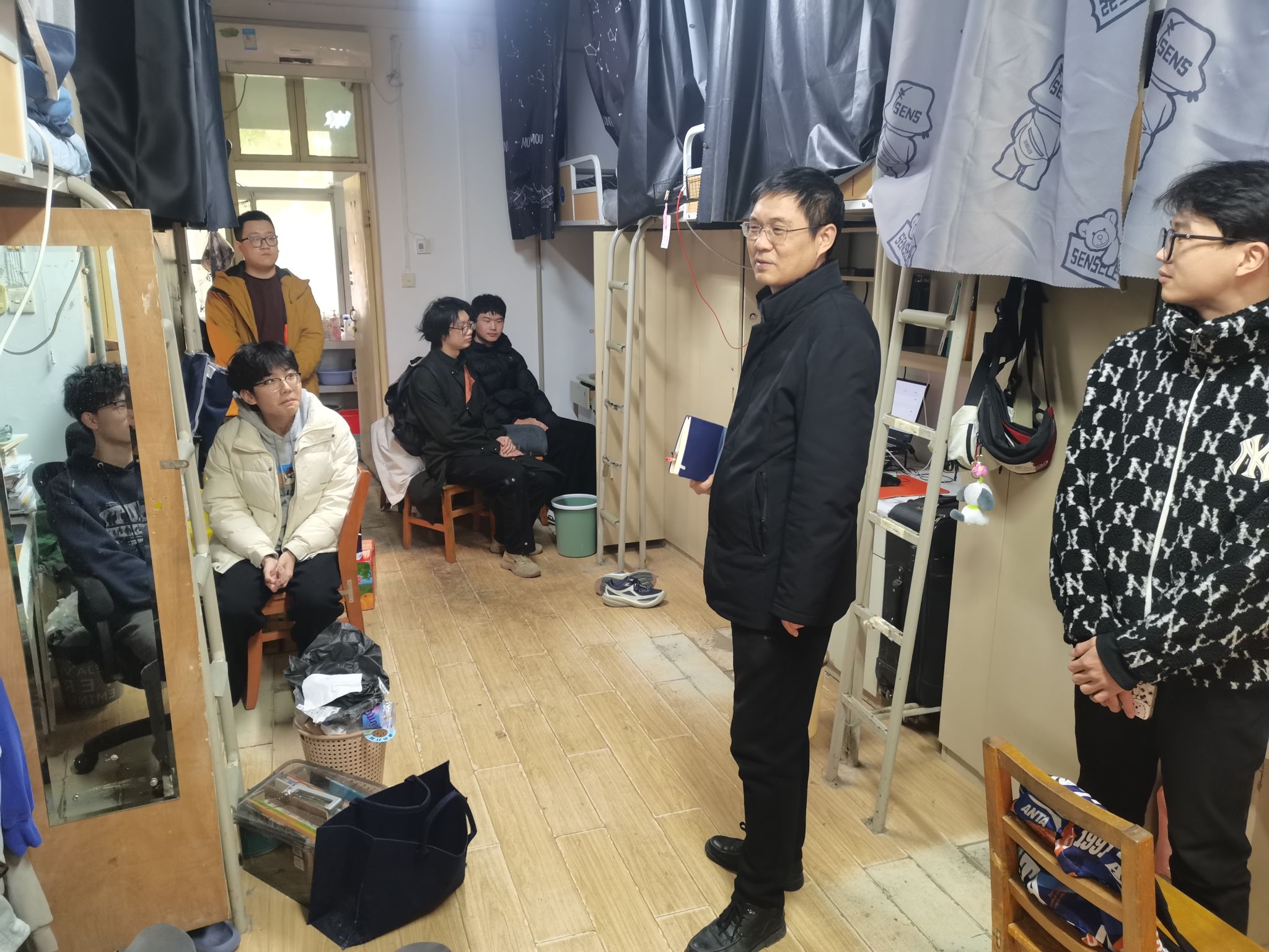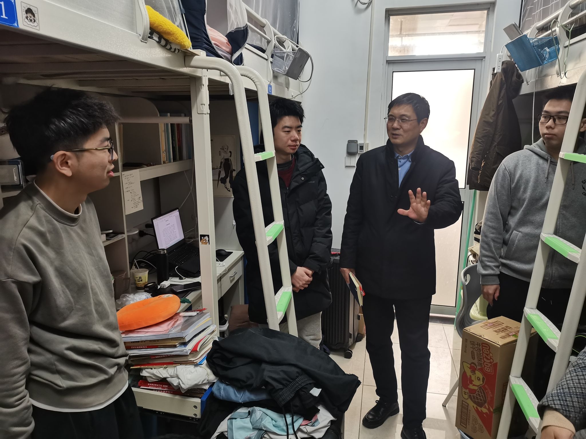 2月18日,学院党委书记刘国华、党委副书记钟苹、辅导员陈波走进学生宿舍,深入了解学生的实际情况,掌握学生思想动态,传递学校和学院关怀。辅导员陈波组织召开班长团支书例会,细致开展学生返校情况调查,布置新学期初各团支部和班级重点工作。