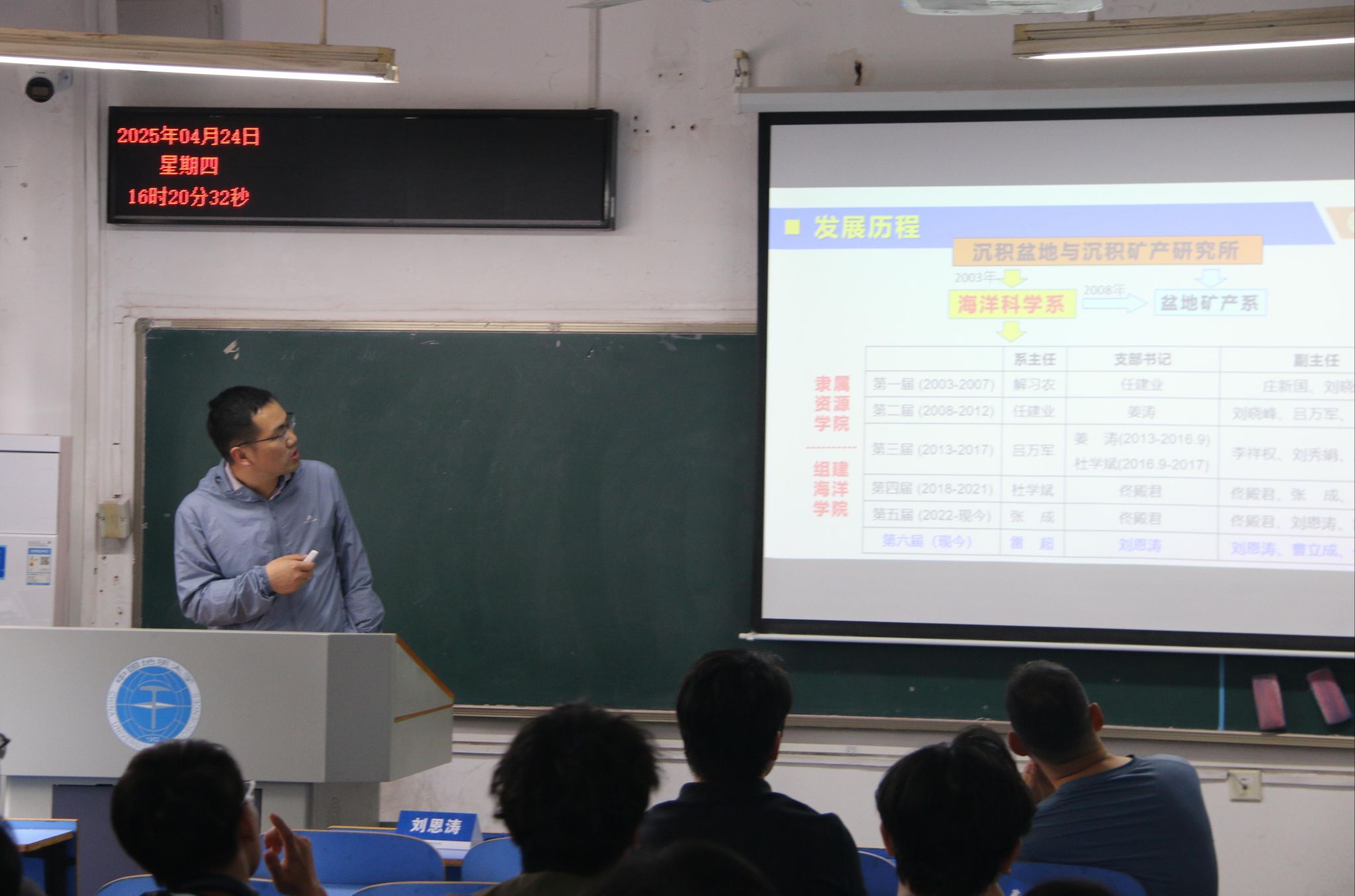 在海洋科学系会场,刘恩涛老师详细介绍了海洋科学系的历史积淀、学科布局及人才队伍建设。他系统梳理了海洋科学系在海洋底构造、海洋沉积、海洋化学与深时海洋、海洋地质灾害、海洋地质年代学等核心研究方向的发展脉络、教学资源优势和学生升学就业去向。近年来,海科系毕业生升学率稳定在69%以上,其中2019届升学率高达77%,四分之一学生进入中国科学院深造,另有四分之一学生被“985”高校录取。