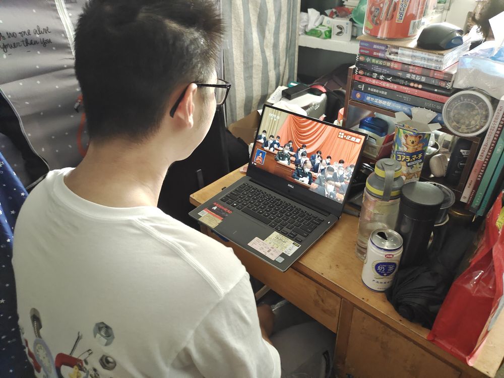 学院党委书记成军,院长孙军,学院党委副书记钟苹,副院长姜涛、陈刚、孙启良,系教师代表雷超、董友扣和部分学生代表在东教A1804会议室集中观看;学院各教师、学生党支部代表,学生团支部代表分别在东教A1805A1816会议室集中观看。全体学生在教室、宿舍通过电脑观看。