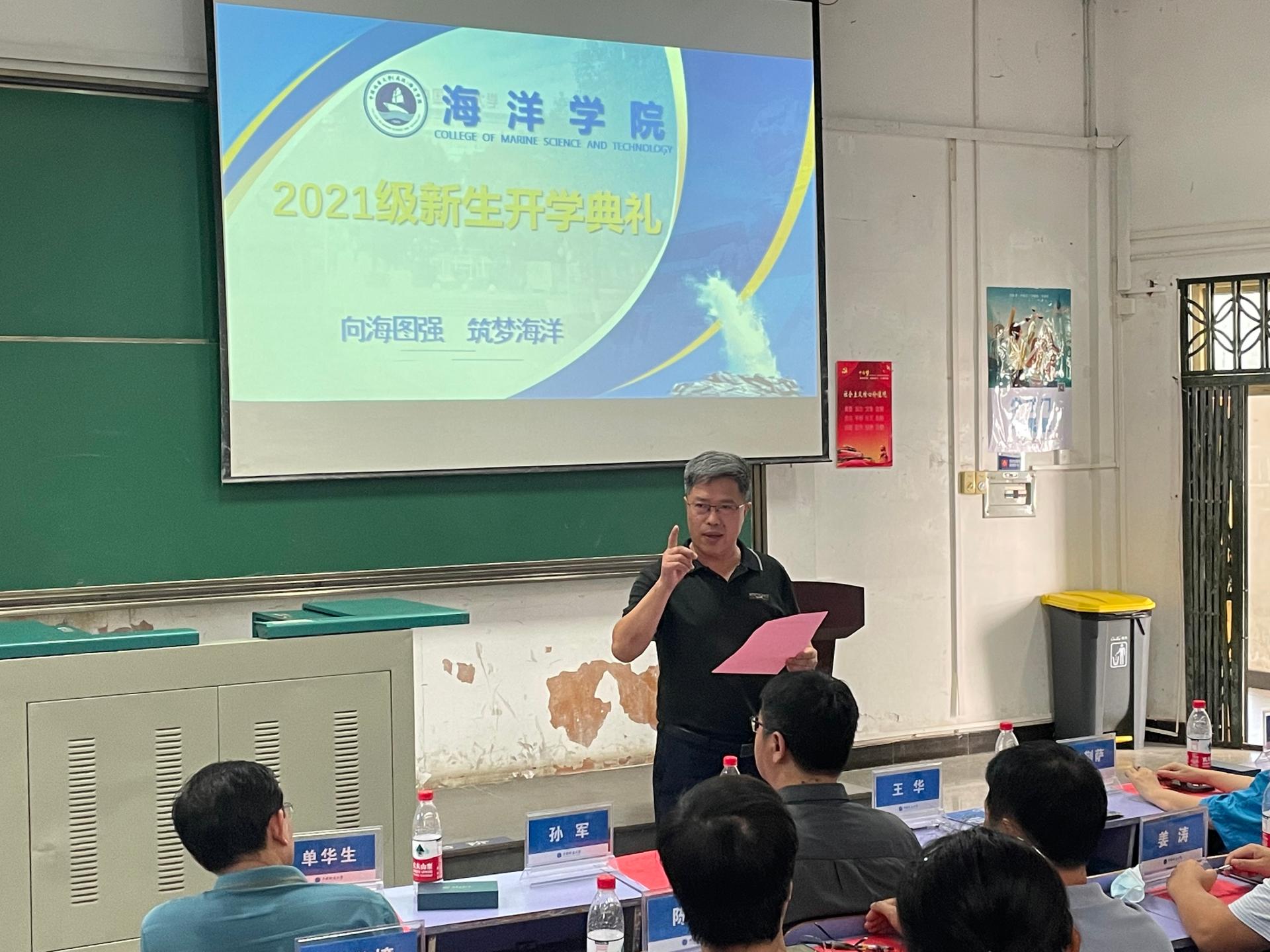 王华副校长做开学典礼总结讲话。他指出我校海洋学科专业具有较长的办学历史,拥有丰富的科研积累和扎实的学科基础,学院在学科建设、人才培养、科研成果等方面已取得较好成绩;他强调开云官网 人才培养体系的链条完成,是瞄准为国家海洋强国战略输出海洋领军人才,希望同学们能够充分利用资源,扎实学习海洋知识;他表示海洋科学是地球系统科学的重要组成部分,海洋学科的发展与地大发展目标高度协同,寄语广大海院同学要坚定信念,投身我国海洋事业建设。