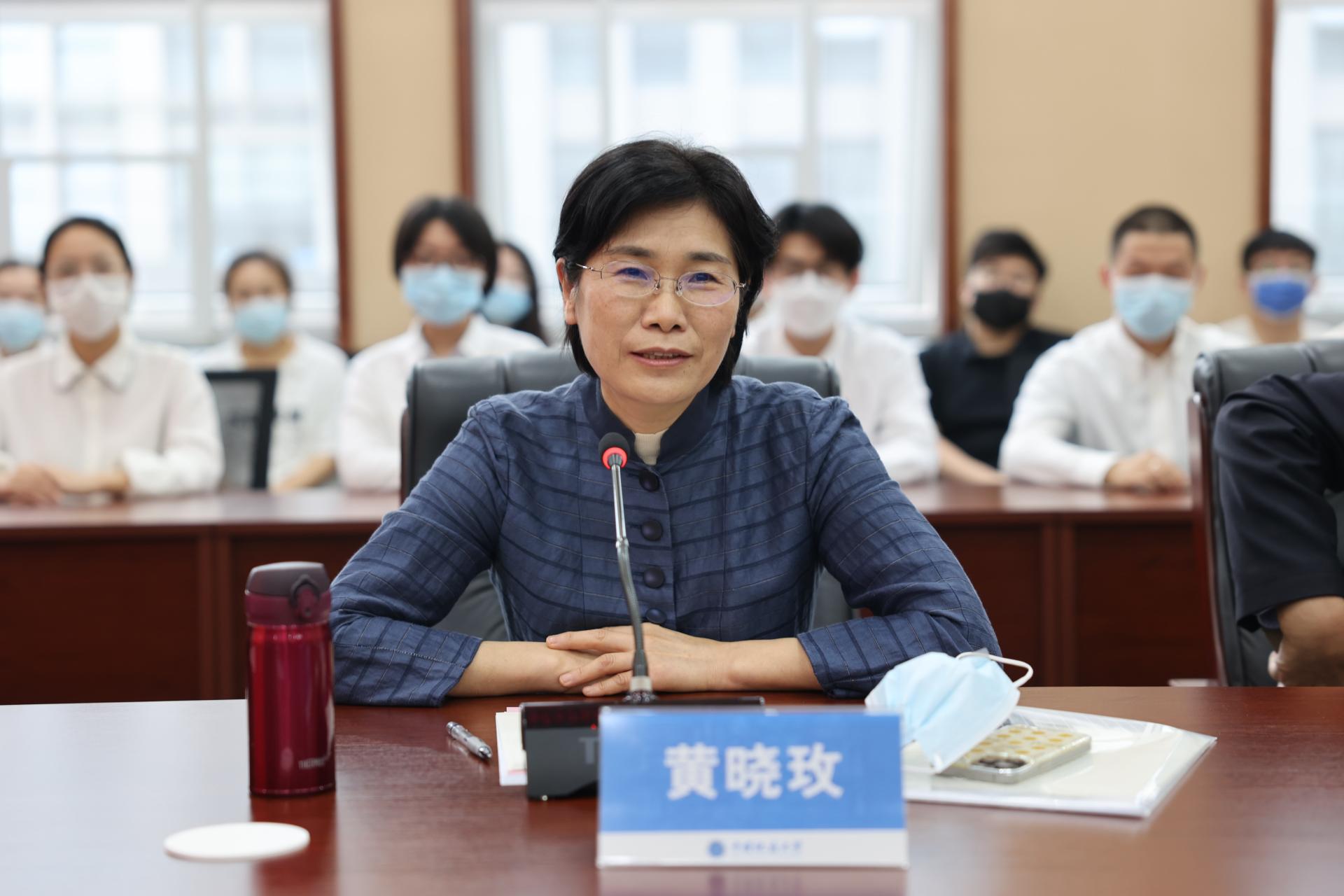 黄晓玫总结讲话。她盛赞陈刚教授父子登顶珠峰壮举,代表全校师生员工热烈欢迎英雄父子凯旋。她表示,陈刚教授父子登顶珠峰的事迹深刻体现着地大人对学校的赤诚热爱。在人类生存的极限地带,他们依然心系学校,将学校旗帜高举在珠峰之巅,将最高峰的样品标本运回学校,用地大人最传统的方式传递情感、续写荣耀。她强调,陈刚在身体力行中践行了地大“攀登精神”,号召广大教师向陈刚学习,引导学生坚定信念、胸怀祖国、勇攀高峰,进一步在“攀登精神”中凝练总结学校办学理念,全面推进学校“双一流”建设和内涵式高质量发展。