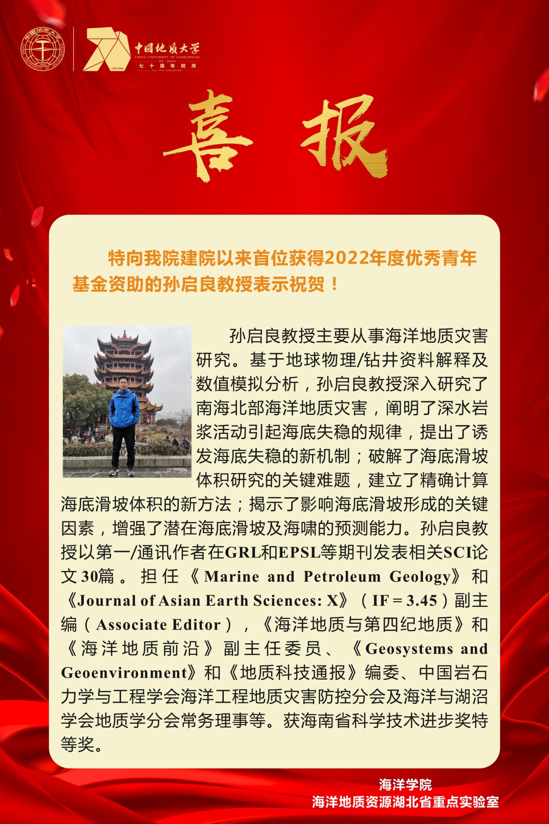 喜报!祝贺开云官网 孙启良教授获得2022年度国家优秀青年科学基金项目资助!
