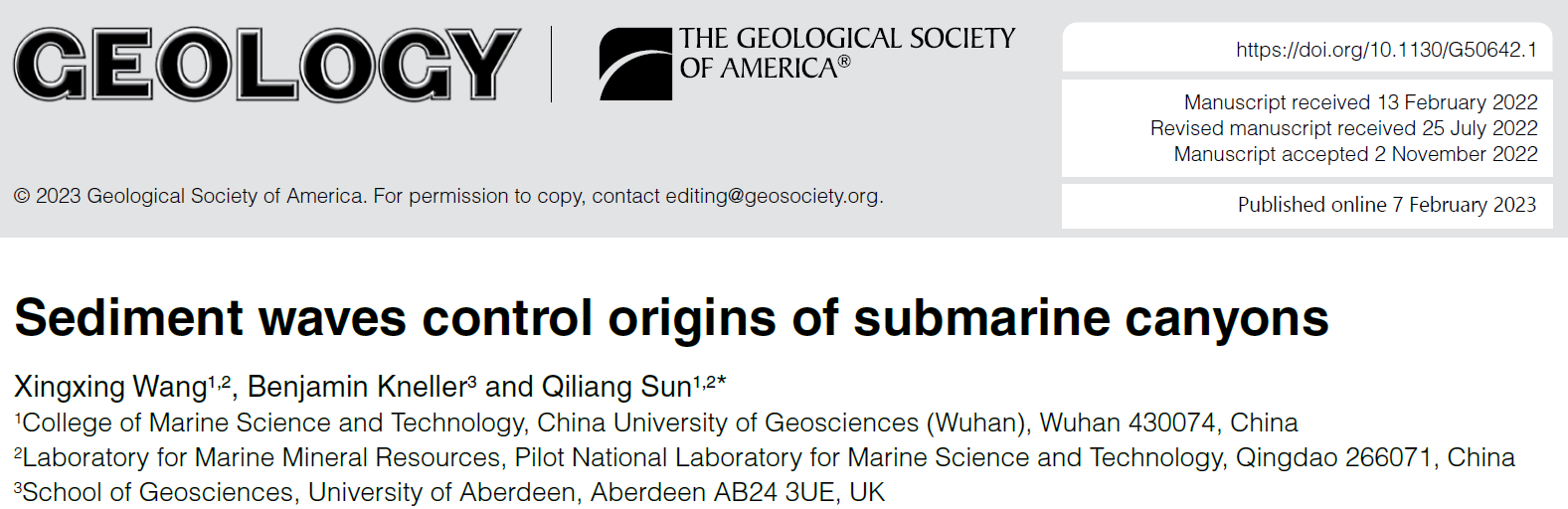 开云官网 王星星、孙启良老师在《Geology》上发表论文--沉积物波控制海底峡谷形成
