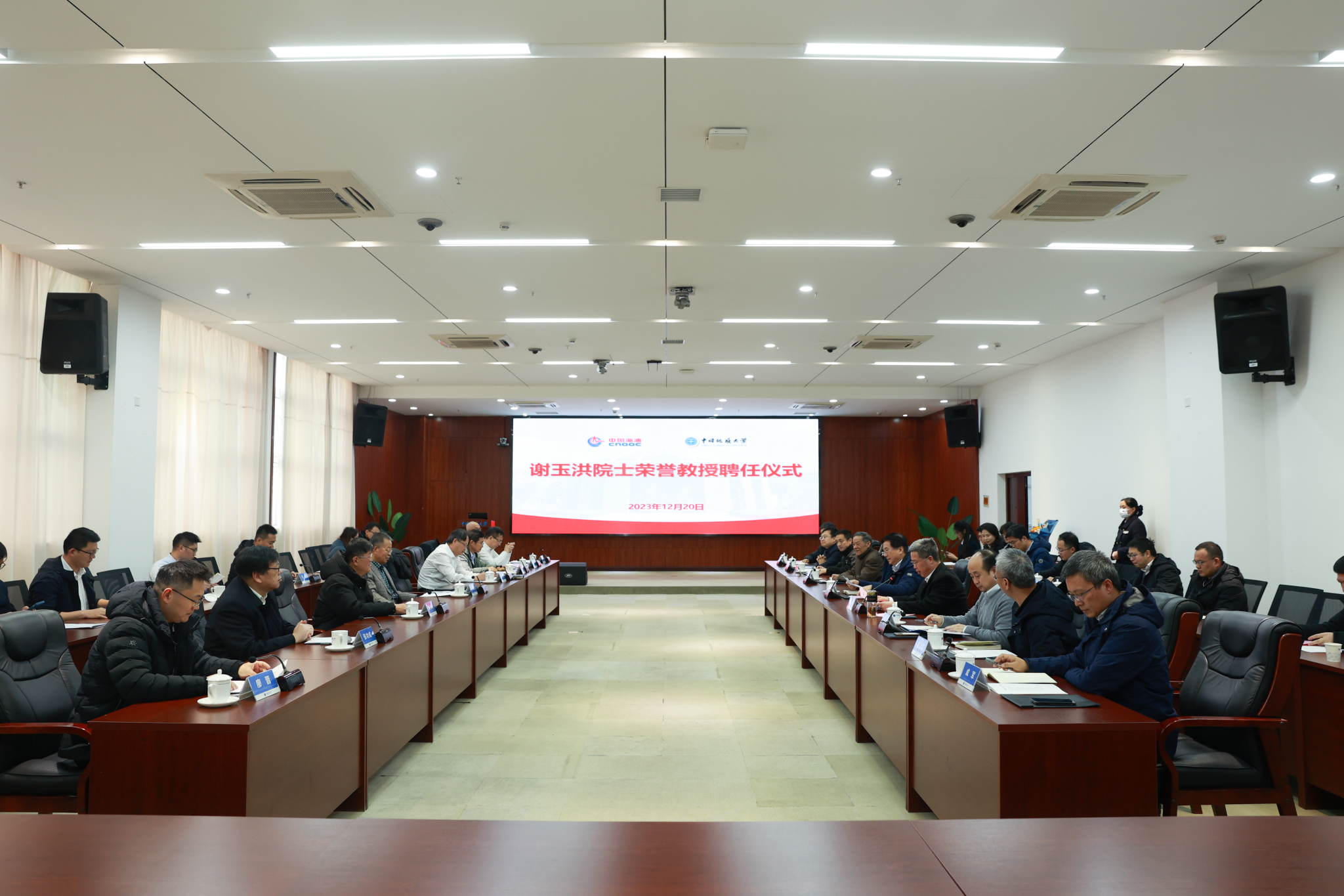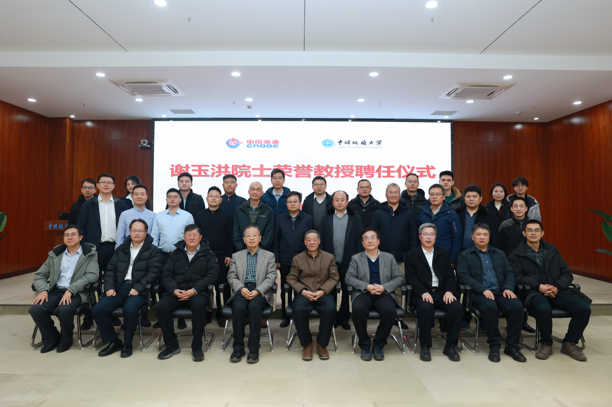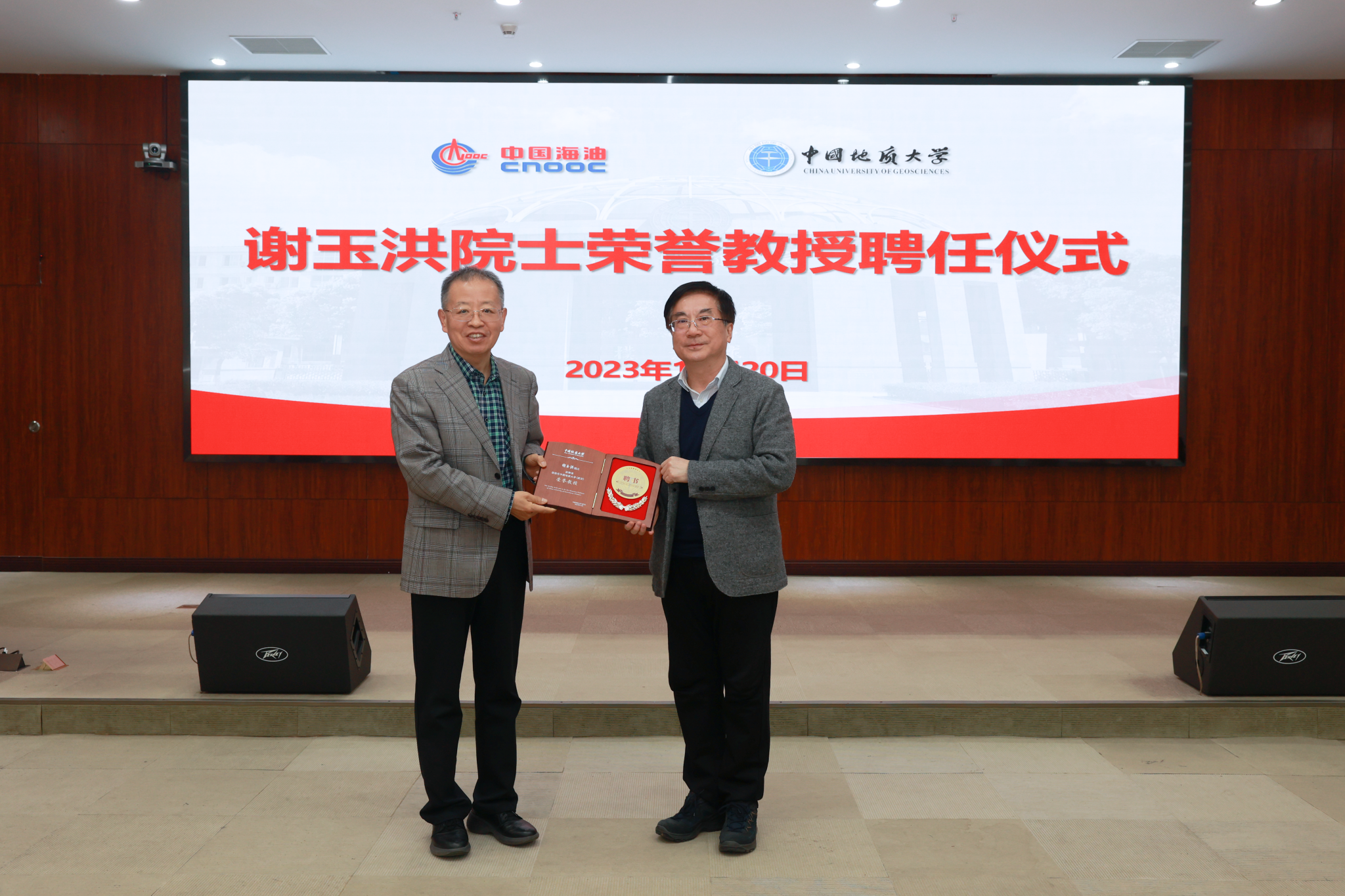 王焰新表示,此次谢玉洪担任我校荣誉教授,是学校落实人才强校战略的重要举措,有利于充分发挥院士作为战略科学家的引领作用。他提到,学校围绕能源地质科学前沿和国家能源重大需求,与中海油集团及所属单位保持着长期稳定的战略合作关系。希望今后双方不断完善人才交流机制,开展专家双向挂职、互聘机制,探索校企联合培养人才方式,保障实现人才培养共育、平台共建共享、技术合作共融等目标,共同培育出一批有原创性和广泛影响力的重大成果,为保障国家能源安全联合贡献“海油—地大方案”。