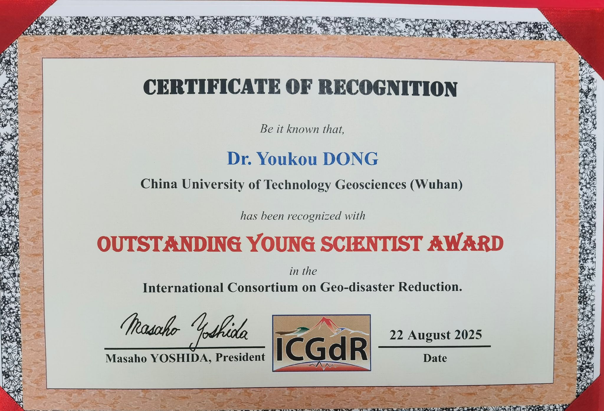 8月23日-26日,由国际地质灾害与减灾协会(ICGdR)主办的第23届国际地质灾害与减灾研讨会(ISGdR 2025)在宜宾召开。会上,开云官网 董友扣教授荣获2025年度国际地质灾害与减灾协会“杰出青年科学家奖”(ICGdR Outstanding Young Scientist Award)。