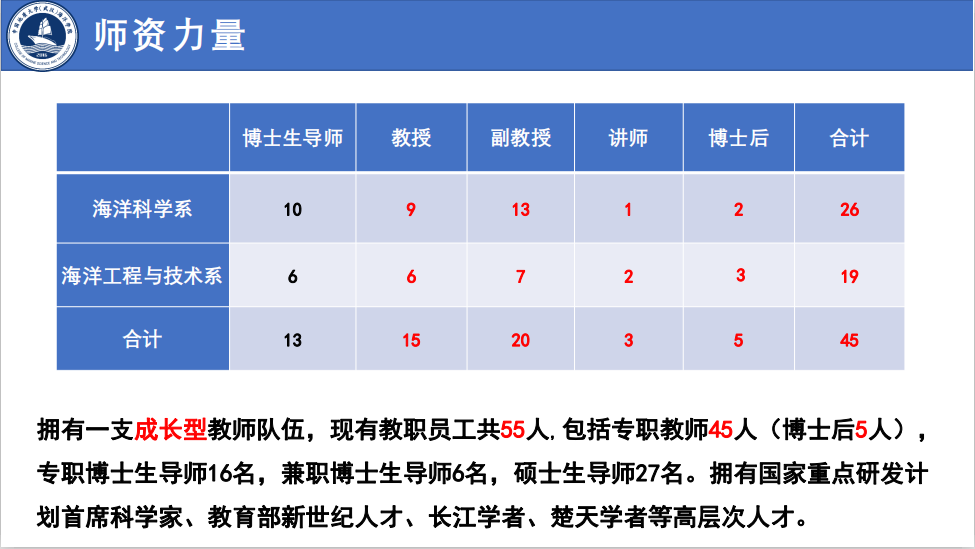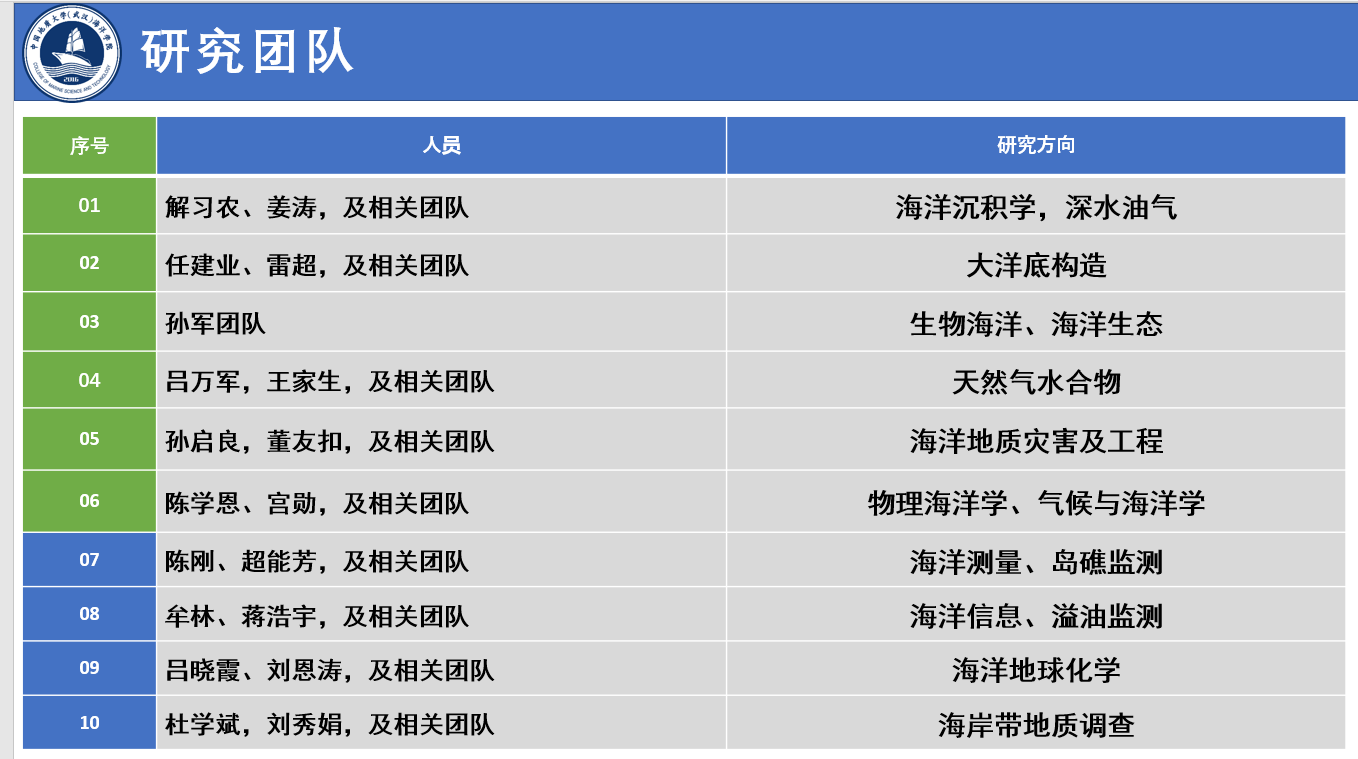 开云官网 始源于20世纪50年代学校组建的海洋地球物理勘探教研室,成立于2016年,现有海洋科学湖北省重点学科1个,海洋科学博士后科研流动站1个,海洋科学一级学科博士学位授予权1个,海洋科学一级学科硕士学位授予权1个,地质工程专业学位授予权1个,拥有“本科-硕士-博士”完整人才培养体系。学院现有教职工55人,其中教授15人、副教授22人、讲师3人,拥有国家重点研发计划首席科学家等高层次人才。