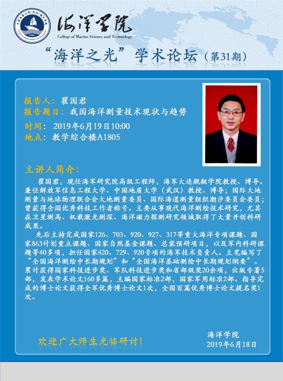 “海洋之光”学术论坛(第31期)—— 翟国君