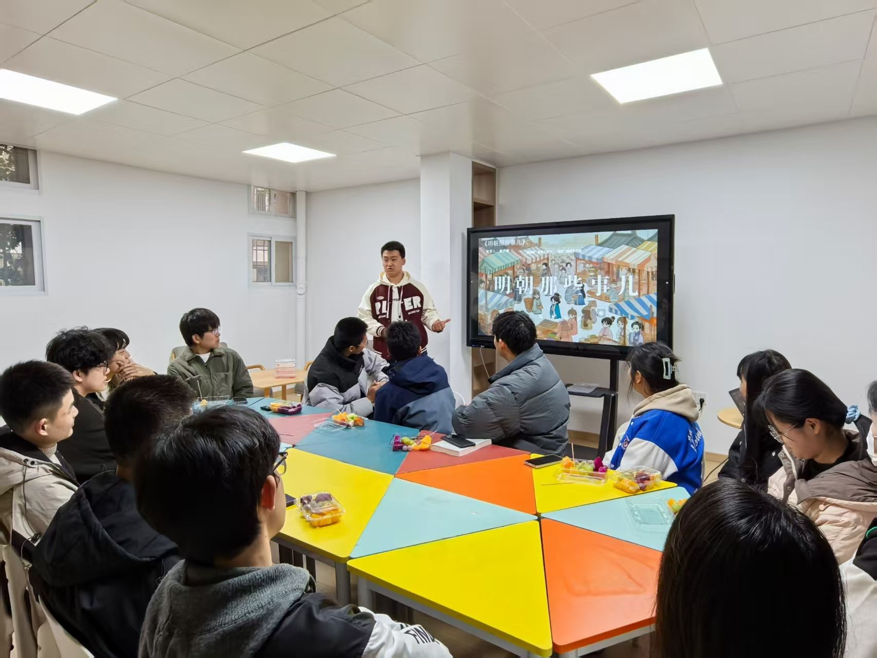 姜子麒同学幽默解读了《明朝那些事儿》,他直言道:“这本书让我对历史产生了很大的兴趣。”赖永伦同学则从《今日简史》思考当今人类社会科技、政治和生态领域所存在的问题。“它让我们以批判的眼光审视时局,以深邃的智慧参与和时代的对话”。