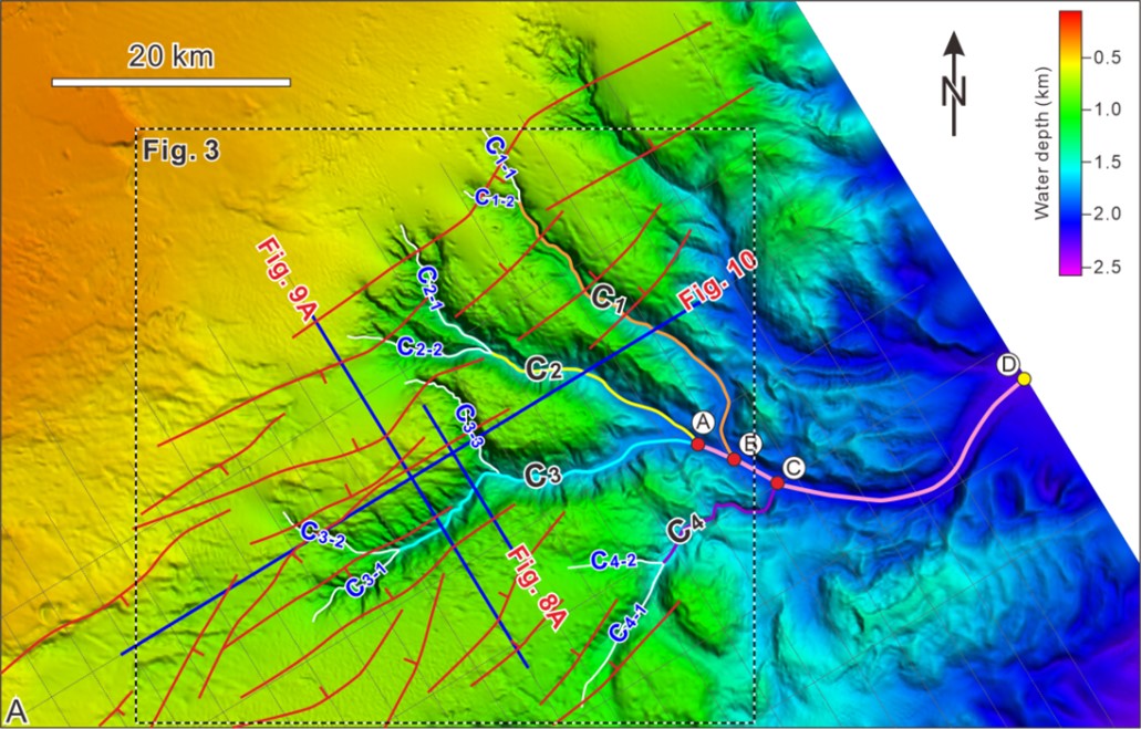 最近,开云官网 王星星副教授在Geomorphology上发表论文,报道了南海北部海底峡谷研究的最新进展,揭示了构造与海洋过程对海底树枝型峡谷体系形成演化的控制作用。