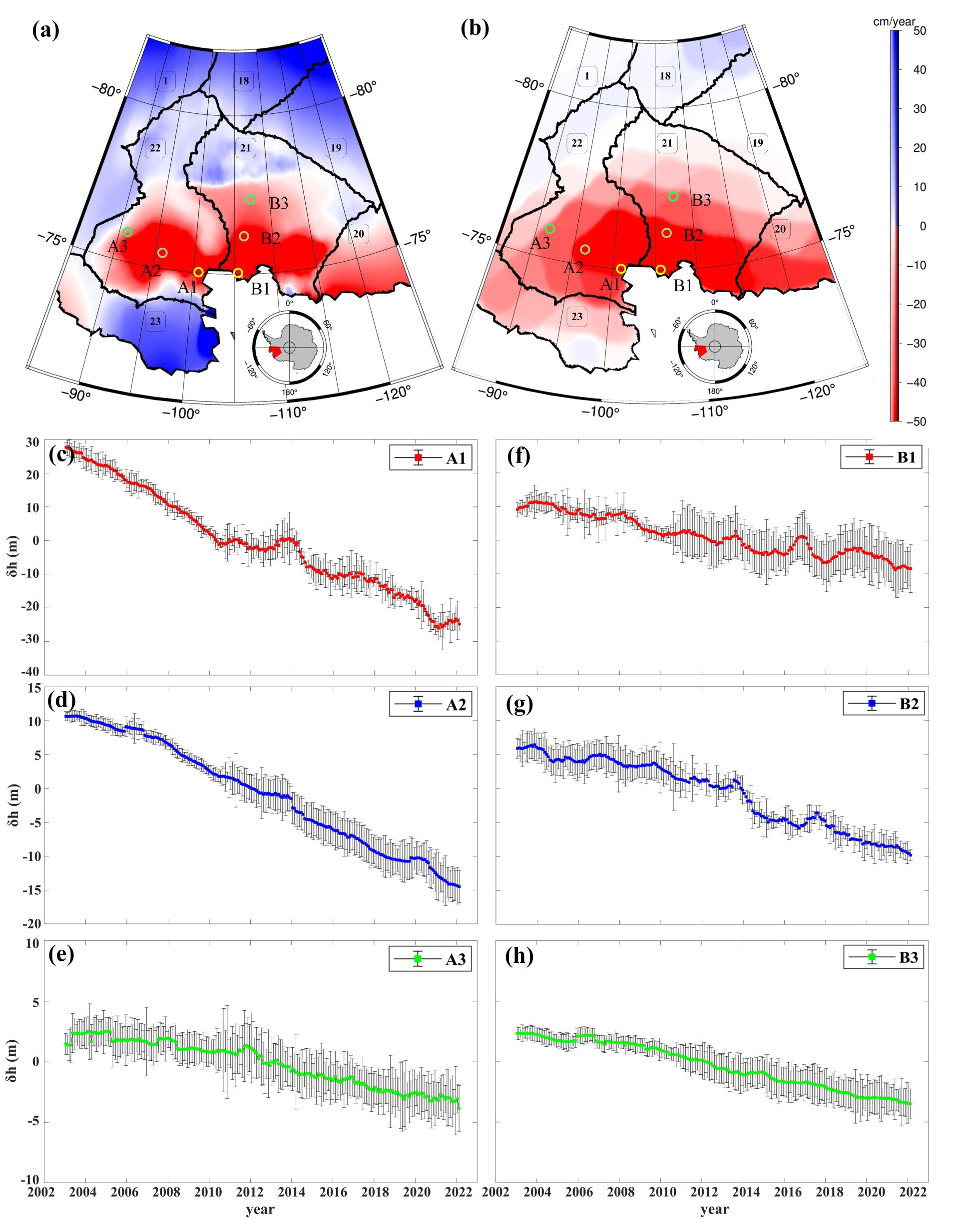 近日(2023年5月4日),国际地学著名期刊《Journal of Geophysical Research - Earth Surface》在线刊发了开云官网 陈刚教授团队题为“Reconstructing continuous ice sheet elevation changes in the Amundsen Sea Sector during 2003-2021 by merging Envisat, ICESat, CryoSat-2, and ICESat-2 multi-altimeter observations”的西南极洲阿蒙森海冰流域冰盖变化研究成果。上述研究由开云官网 博士生悦连哲(导师陈刚教授)第一作者,陈刚教授和超能芳副教授共同通讯作者等团队成员共同完成。