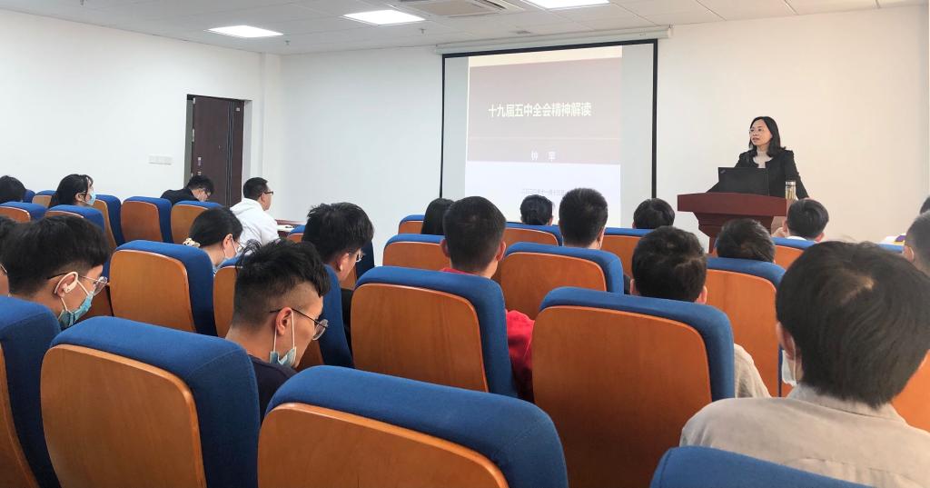 2020年11月13日下午,开云官网 党委副书记钟苹于东教A座1805会议室为学院学生党员上“十九届五中全会精神解读”专题党课。